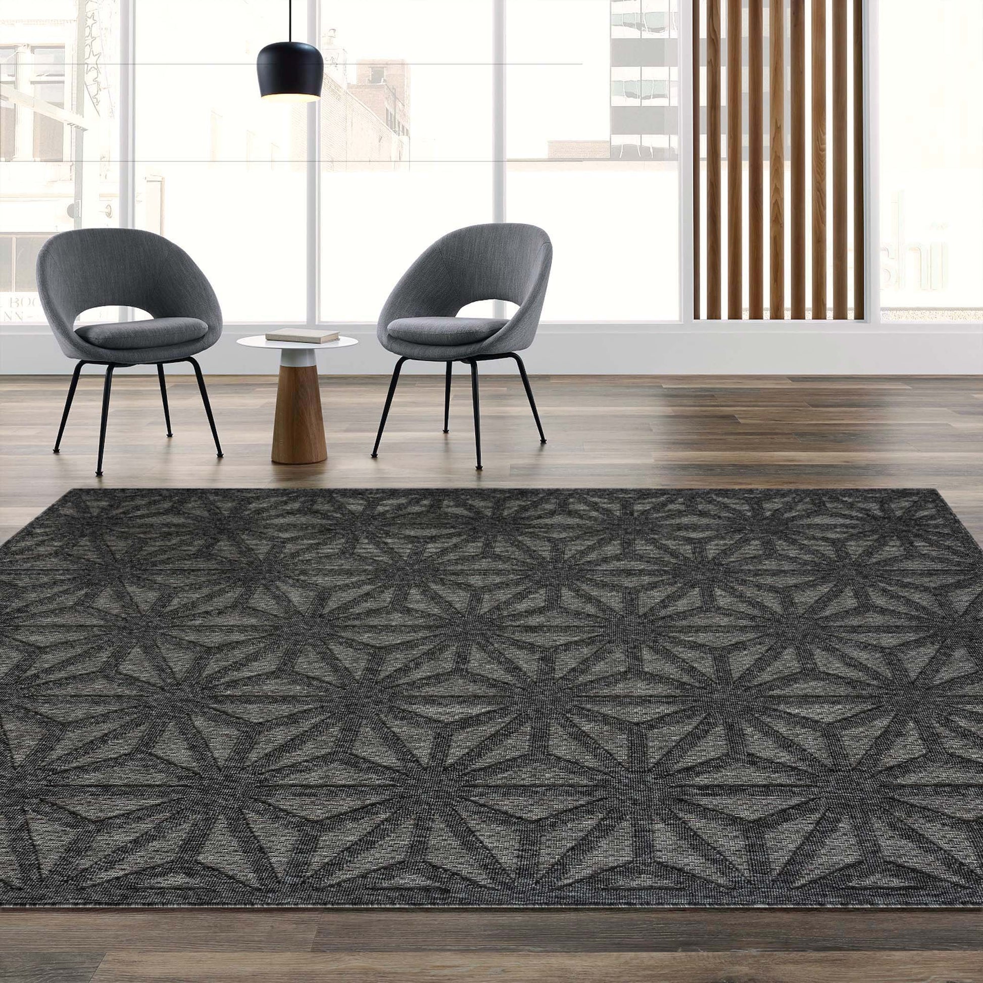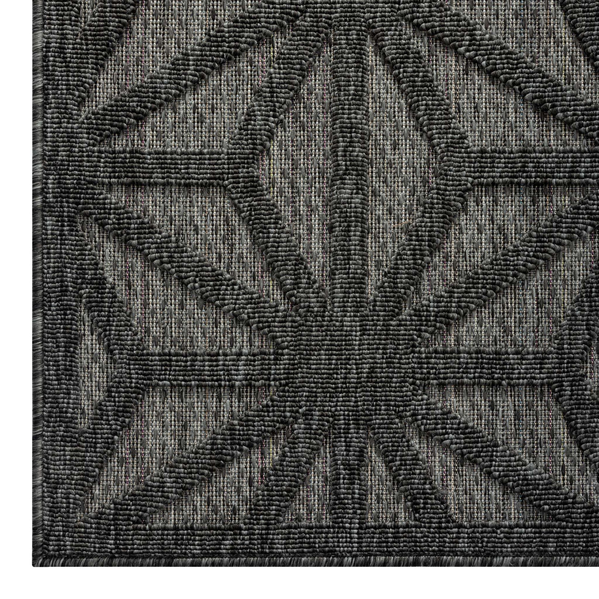 This elegant indoor/outdoor collection has subtle, trellis patterns woven into a multi-textured polypropylene pile, sculpted with a high-and-low technique for a beautiful, subdued relief effect. This deluxe collection is suitable for outdoor use in covered patios, balconies, terraces, and courtyards with its latex base. These attractive rugs also have a shed-resistant and anti-static pile that is both durable and easy to maintain.